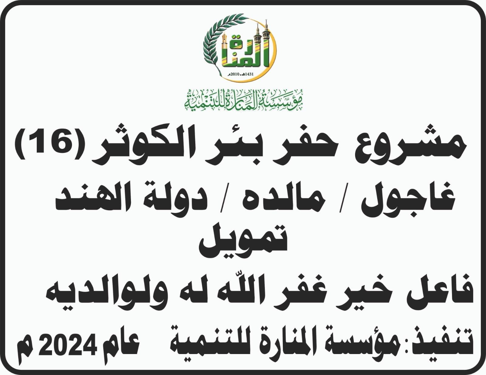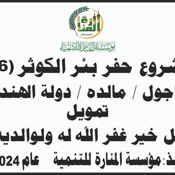 المشروعات المشروعات الإنشائية حفر الآبار وبناء خزانات المياه وسقيا الماء بئر الكوثر رقم (16)