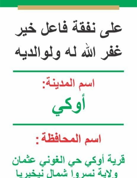قرية: أوكي/حي الغوني عثمان/ولاية نسرو/شمال دولة نيجيريا