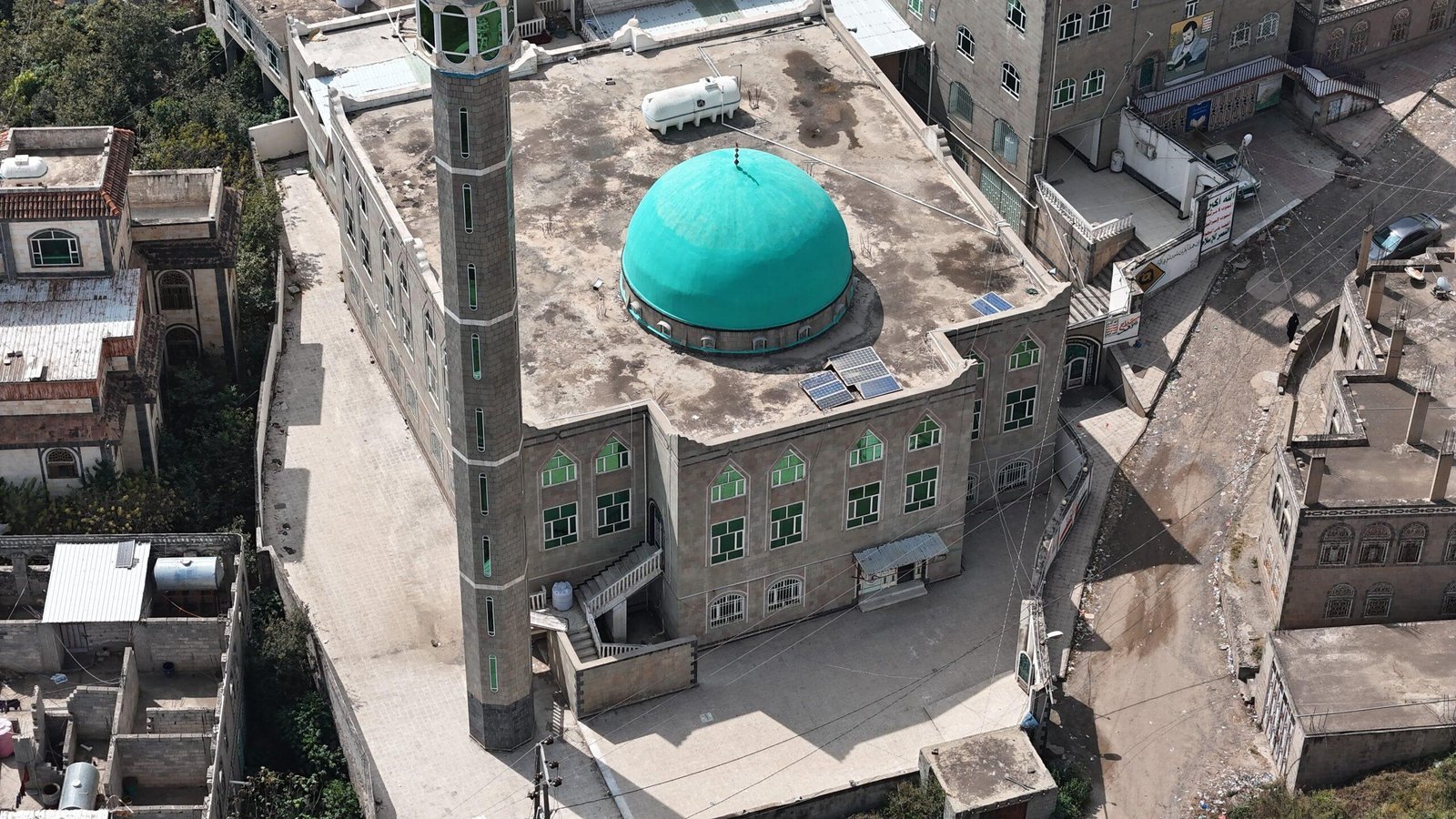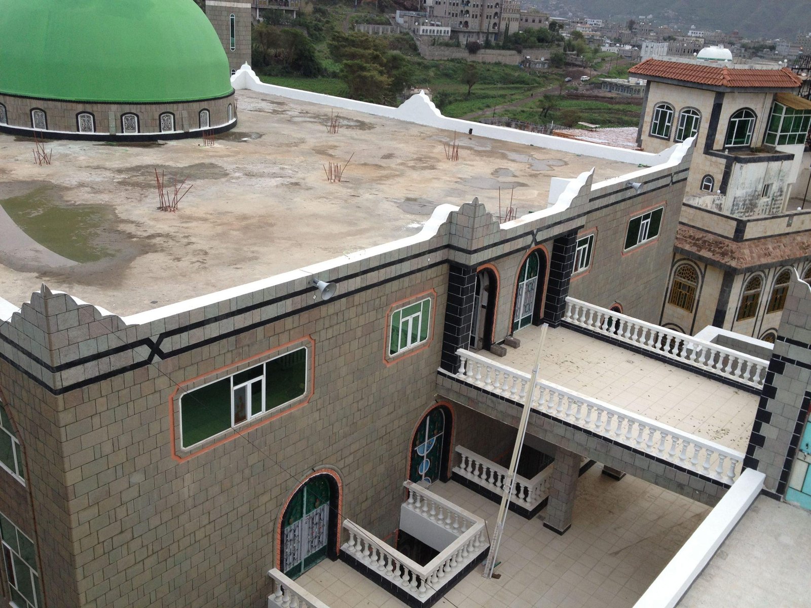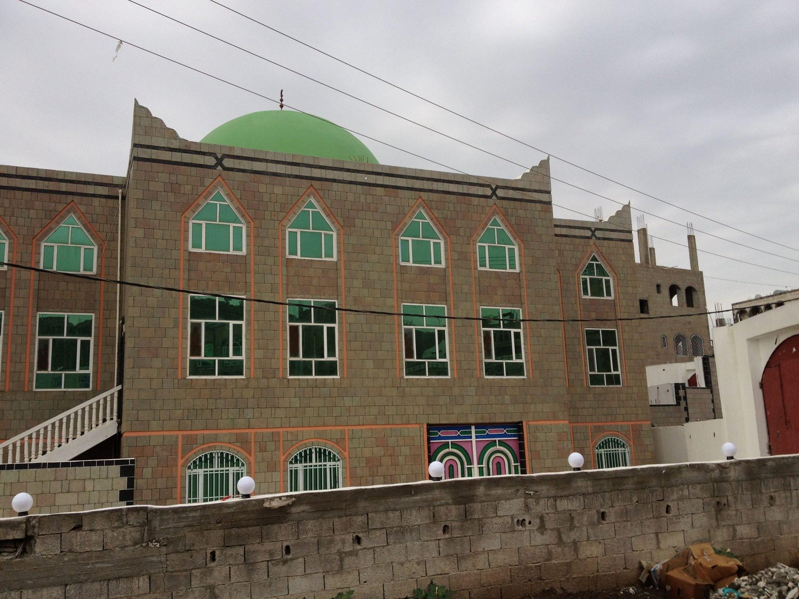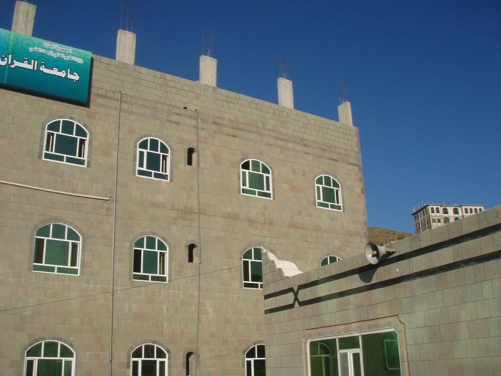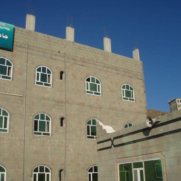 مسجد جامع + مصلى للنساء + فصول دراسية عدد(17) + قاعات محاضرات كبيرة عدد (2) + عمارات وقفية عدد (2) + مكتبة علمية + آبار ارتوازية عدد (2) + معمل كمبيوتر عدد (2) + خزان مياه + دورات مياه للرجال وللنساء + منارة - ساحات خلفية وأمامية وشرقية وغربية.