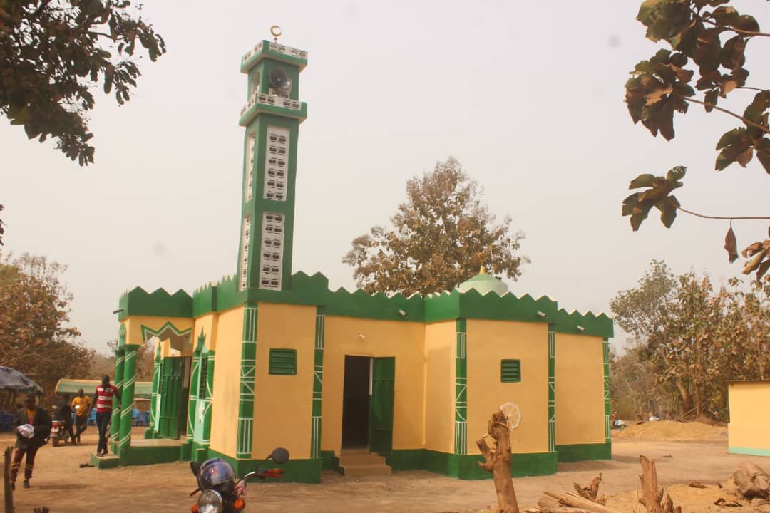مسجد جامع + مصلى للنساء + منارة +خزان مياه + دورة مياه + بئر .