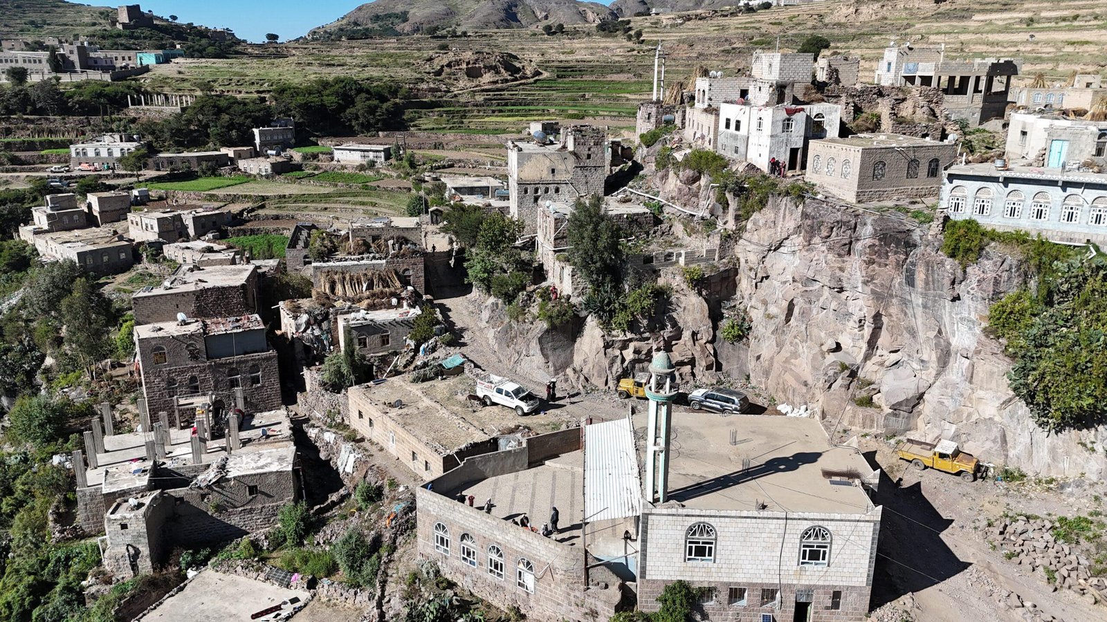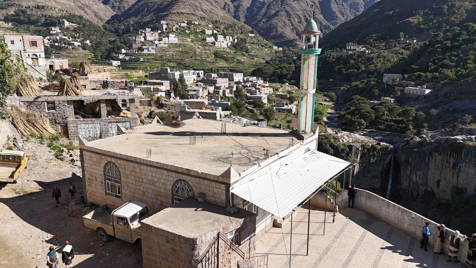 مسجد جامع + منارة +فصل لتحفيظ القرآن الكريم+بيت للإمام خزان مياه + دورات مياه + سور + خزان صرف صحي.